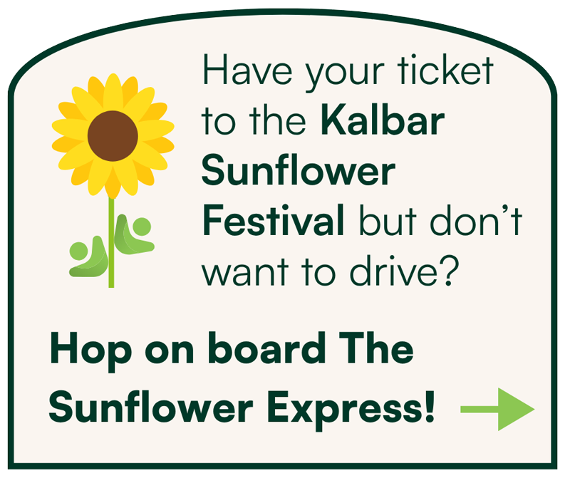 TransitCare is providing FREE transport from Beenleigh and Ipswich for visitors to the Kalbar Sunflower Festival in 2026! For more details download the timetable and information flyer.